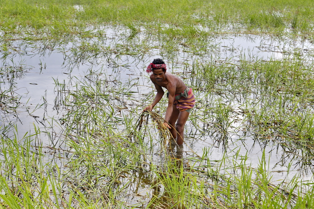 (TOP PHOTO: A farmer inspects his flood-damaged rice crop in Bangladesh's Manikanj District.