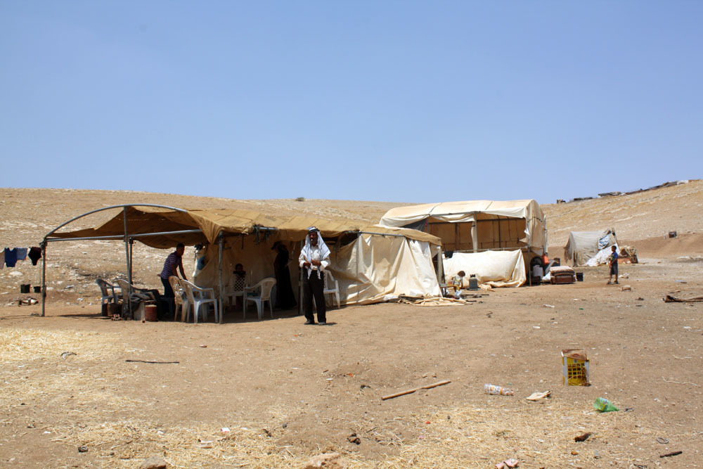 Al-Hadidiya is surrounded by three expanding Israeli townships, Ro’i, Beka’ot and Hemdat. Its land is directly adjacent to Ro’i and the community collects any over-flow from the water pumps irrigating the settlers’ crops in rusting tins.