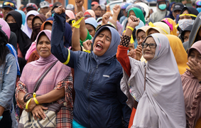 Tsunami survivors protest government rebuilding policies and delays to distributing recovery funds. -