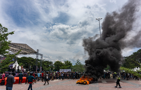 Angered at being kept in the dark about the recovery efforts, protesters burnt tires outside the Palu mayor's office -