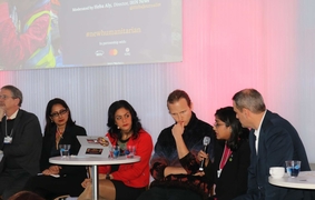 Left to right: IRIN Director Heba Aly, CEO of Mercy Corps Neal Keny-Guyer, CEO of Syngenta J. Erik Fyrwals, and Minister of Foreign Affairs and East African cooperation of Tanzania Augustine P. Mahiga -