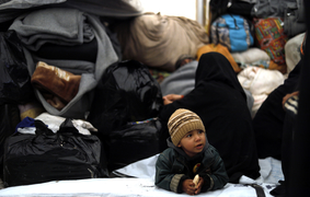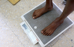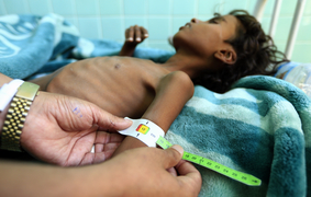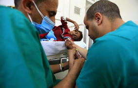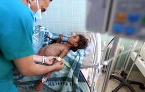 A Burundian refugee suspected of having cholera receives IV rehydration in the health clinic at Lake Tanganyika Stadium in Kigoma, Tanzania. -