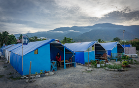 The NGO Mercy Malaysia built this complex of 200 temporary shelters for fishing families whose homes were destroyed by the September tsunami in Indonesia’s Central Sulawesi province. -