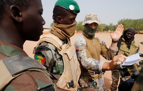 Malian soldiers of the 614th Artillery Battery during a training session with the European Union Training Mission in central Mali, March 2021. -