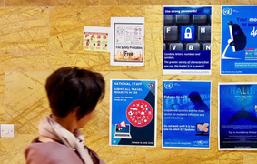 Posters about cyber security in the office of the UN Special Envoy for Yemen in Amman, Jordan. -