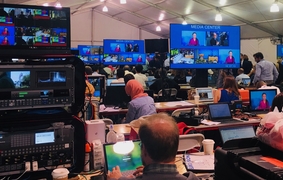 Journalists watch Greta Thunberg address the UN, 23 September 2019 -