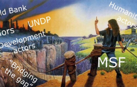 A meme posted on social media about the "nexus" policy in international aid. -