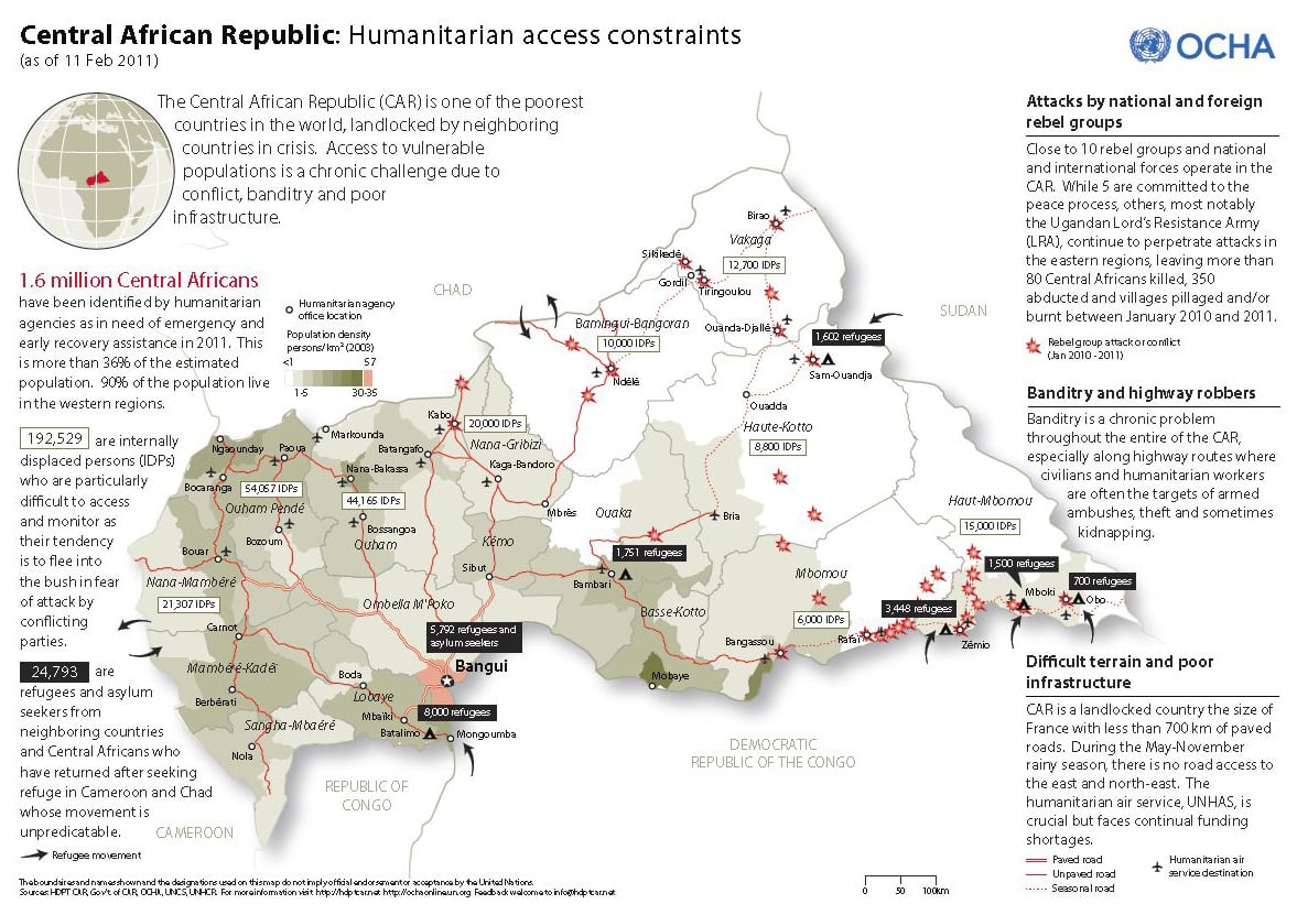 The prevalence of armed bandits coupled with the paucity of government security forces and the withdrawal in 2010 of the UN Mission in CAR and Chad also contribute to the insecurity.